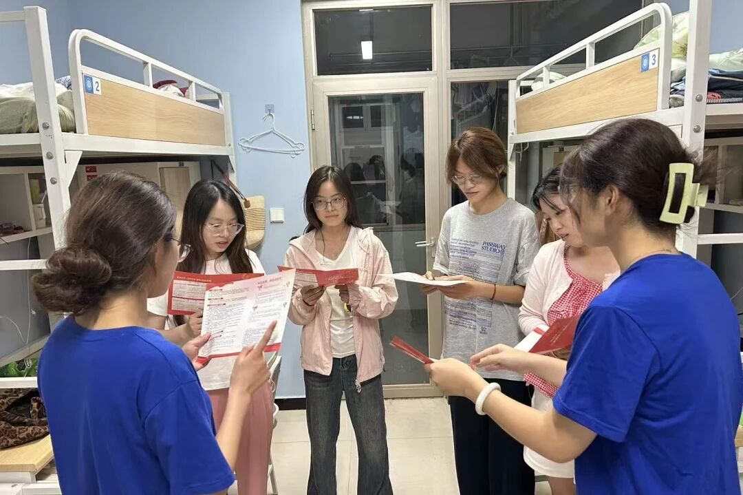 活动当天,党务助理们身着理工学部文化衫,深入到学生宿舍,向同学们发放了《河南省大学生宗教政策法规明白卡》,资料详细介绍了宗教事务管理的法律法规,强调了教育与宗教相分离的原则,以及在校园内严禁进行任何形式的宗教活动。