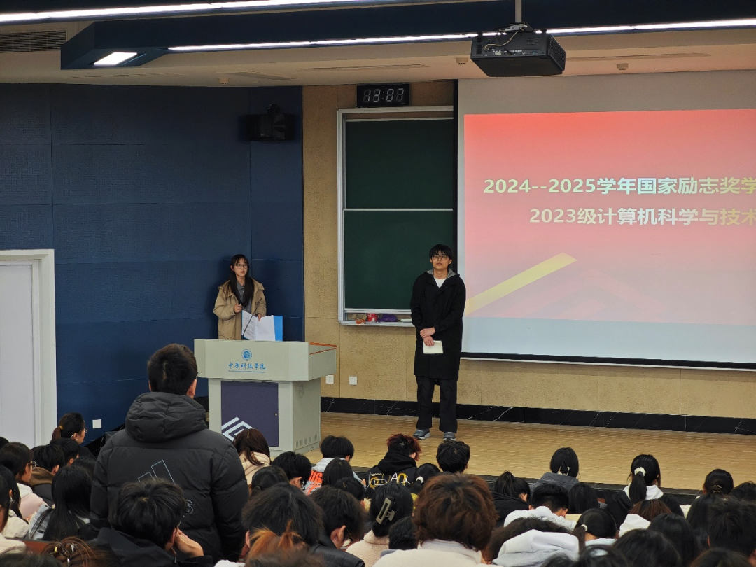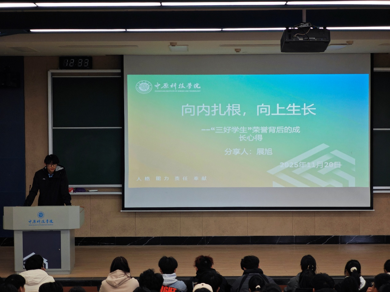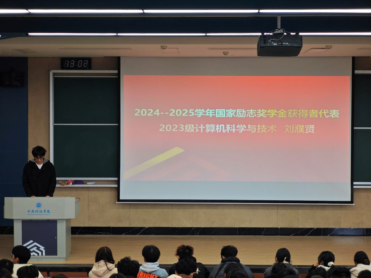 会议伊始,省级三好学生代表展旭、省级优秀学生干部代表李佳、郭姿含以及国家励志奖学金获得者代表刘濮贤依次上台发表演讲。他们结合自身荣誉经历与实践经验,带来了极具针对性的干货分享。